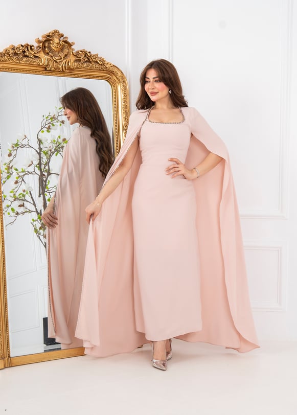 - مميزات التصميم : ياقة مربعة بتطريز لامع, قصة مستقيمة تعزز طول القامة .