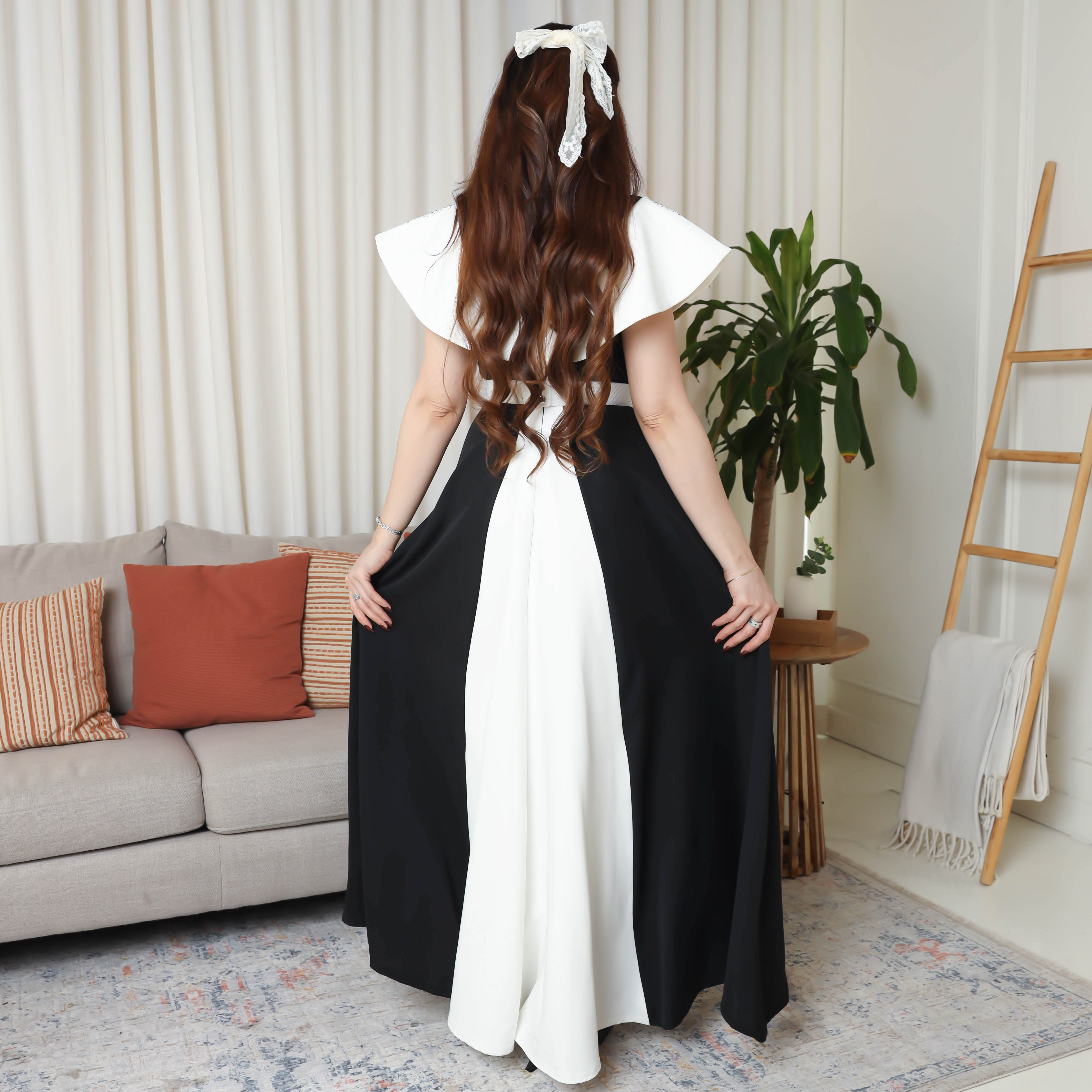 امنحي نفسك إطلالة تأسر الأنظار مع فستان ناعم أسود بتدخلية أبيض من جاكوين. صُمم بخامة الكريب الفاخرة التي تجمع بين النعومة والانسيابية، ليمنحك راحة وأناقة في آن واحد. تزينه فصوص براقة على الأكتاف مع تدخلية بيضاء أنيقة تعكس لمسة عصرية تبرز جمال التصميم وتضفي عليه طابعاً ملكياً. حيث يجمع بين الرقي والبساطة في تصميم واحد. يتوفر بمقاسات متعددة من S حتى XL ليمنح كل امرأة إطلالتها المثالية التي تبرز جمالها وتفردها. عند ارتدائه ستشعرين بأنوثة طاغية وثقة متألقة، فهو أكثر من مجرد فستان، إنه قطعة فنية تعكس روحك الراقية وتجعلك محط أنظار الجميع .