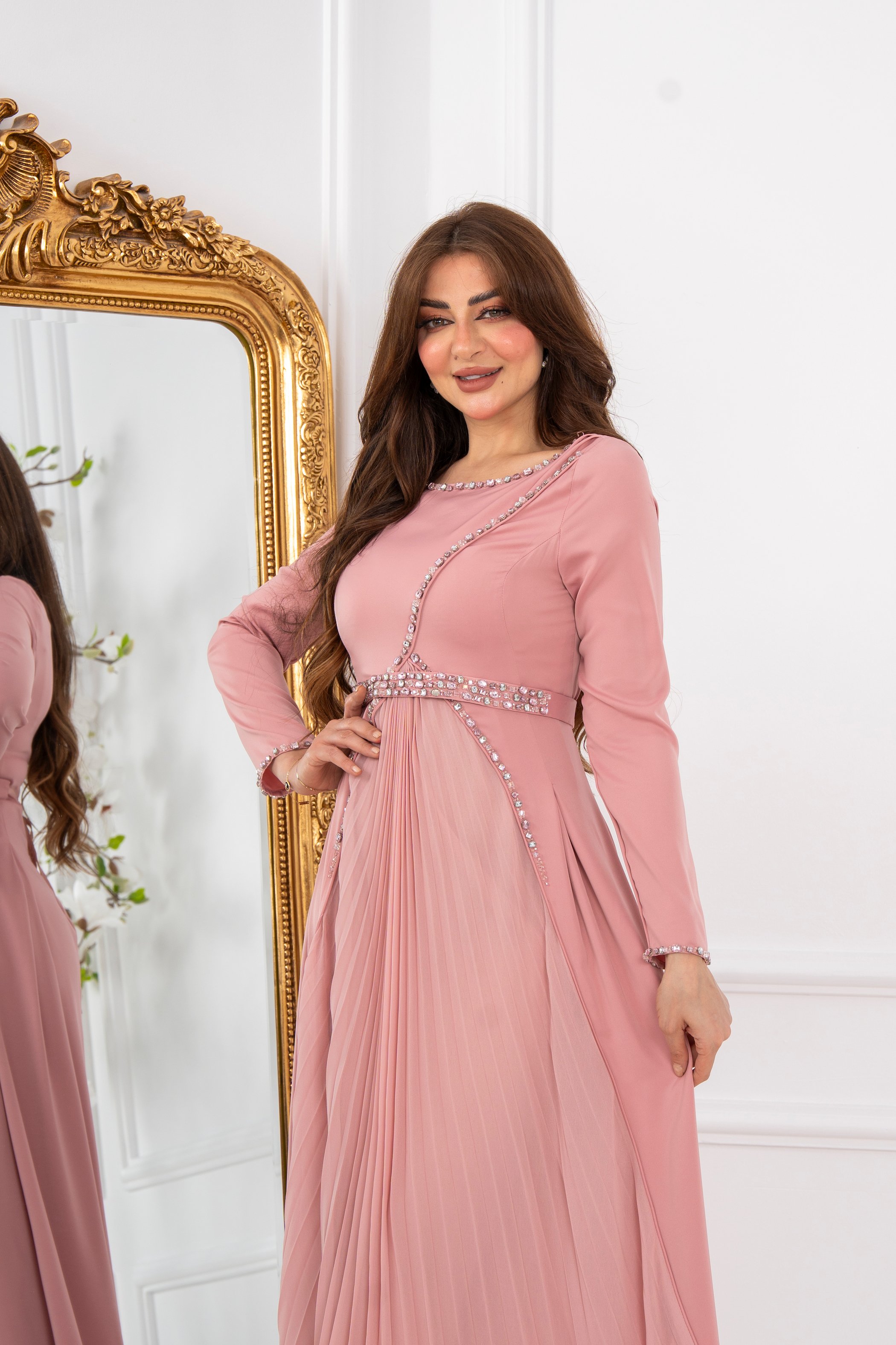 💫🌸 إطلالة أنثوية حالمة مع فستان وردي ناعم مطرز بتفاصيل فاخرة تزيدك جاذبية في كل مناسبة 🌸💫