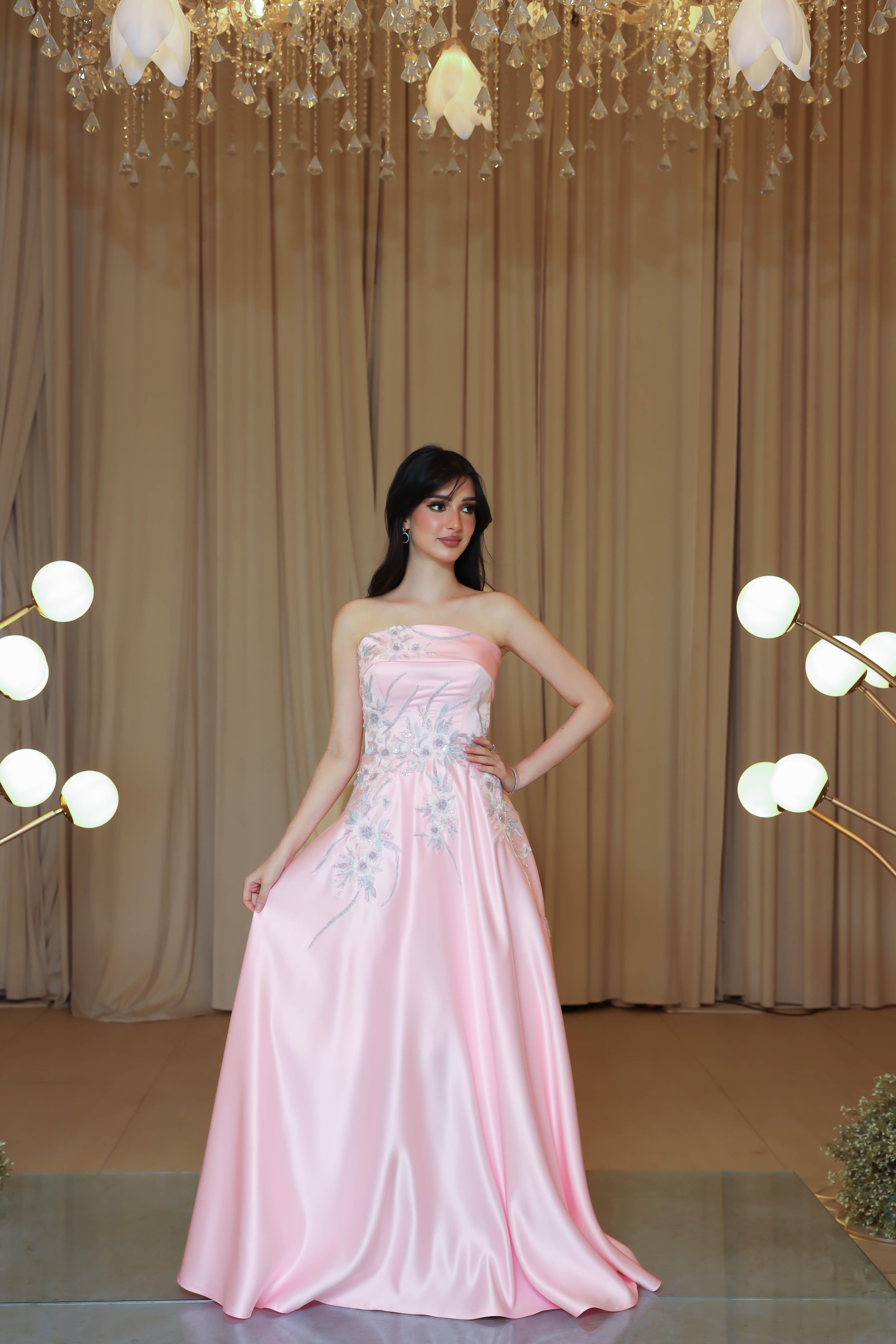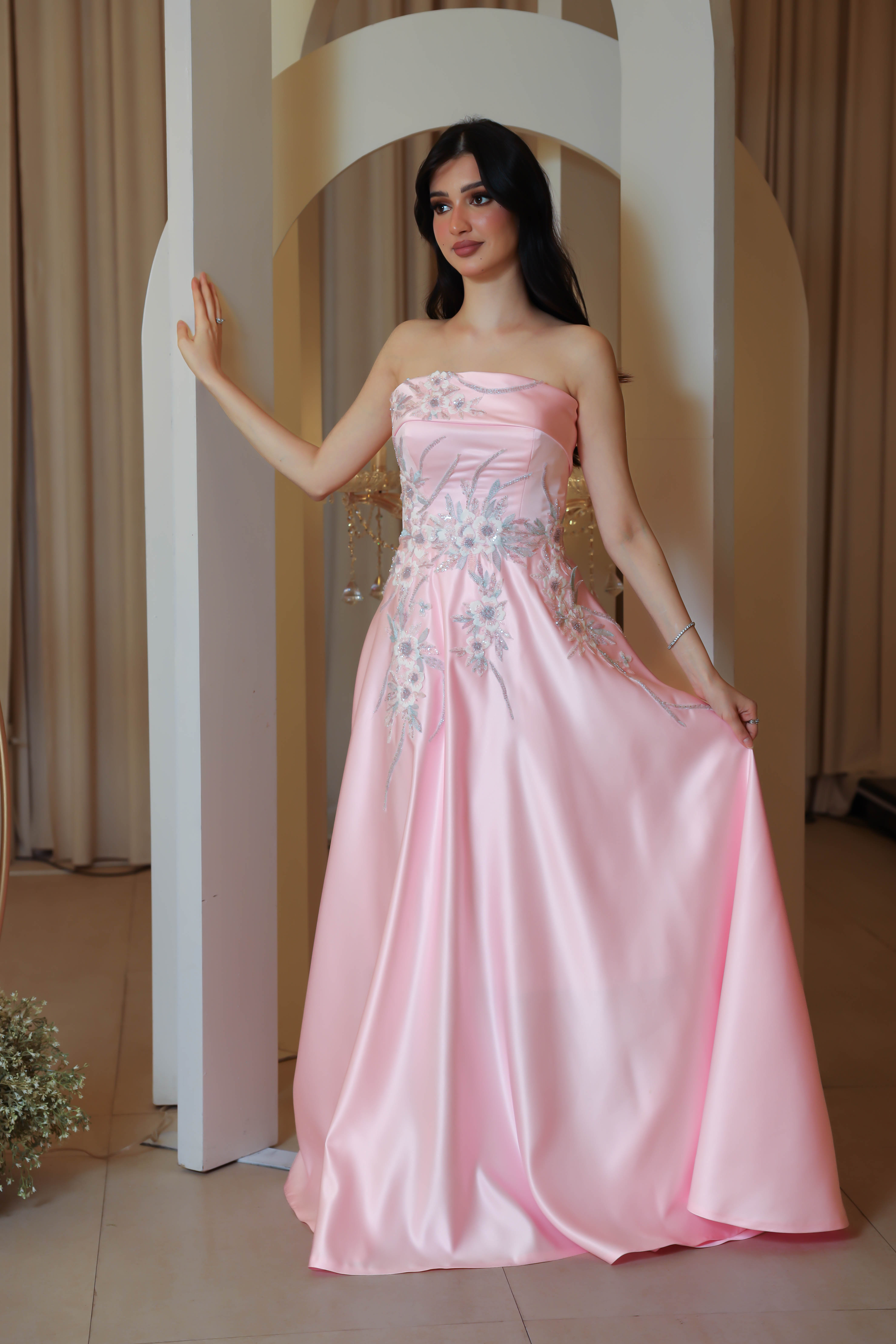 💫🌸فستان وردي بلمعة راقية وتطريز فضي فاخر، لإطلالة ملكية تُضيء كل مناسبة 🌸💫