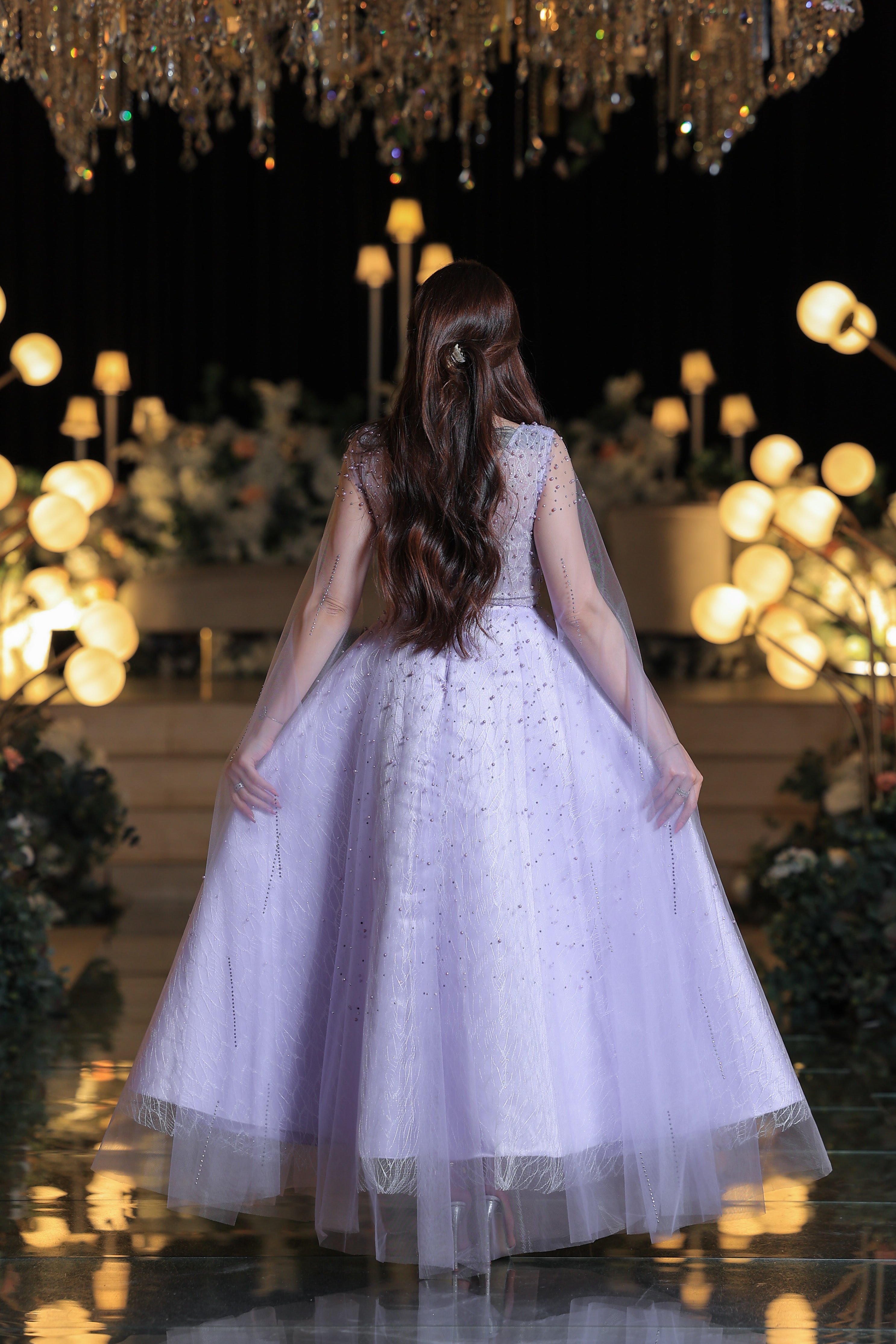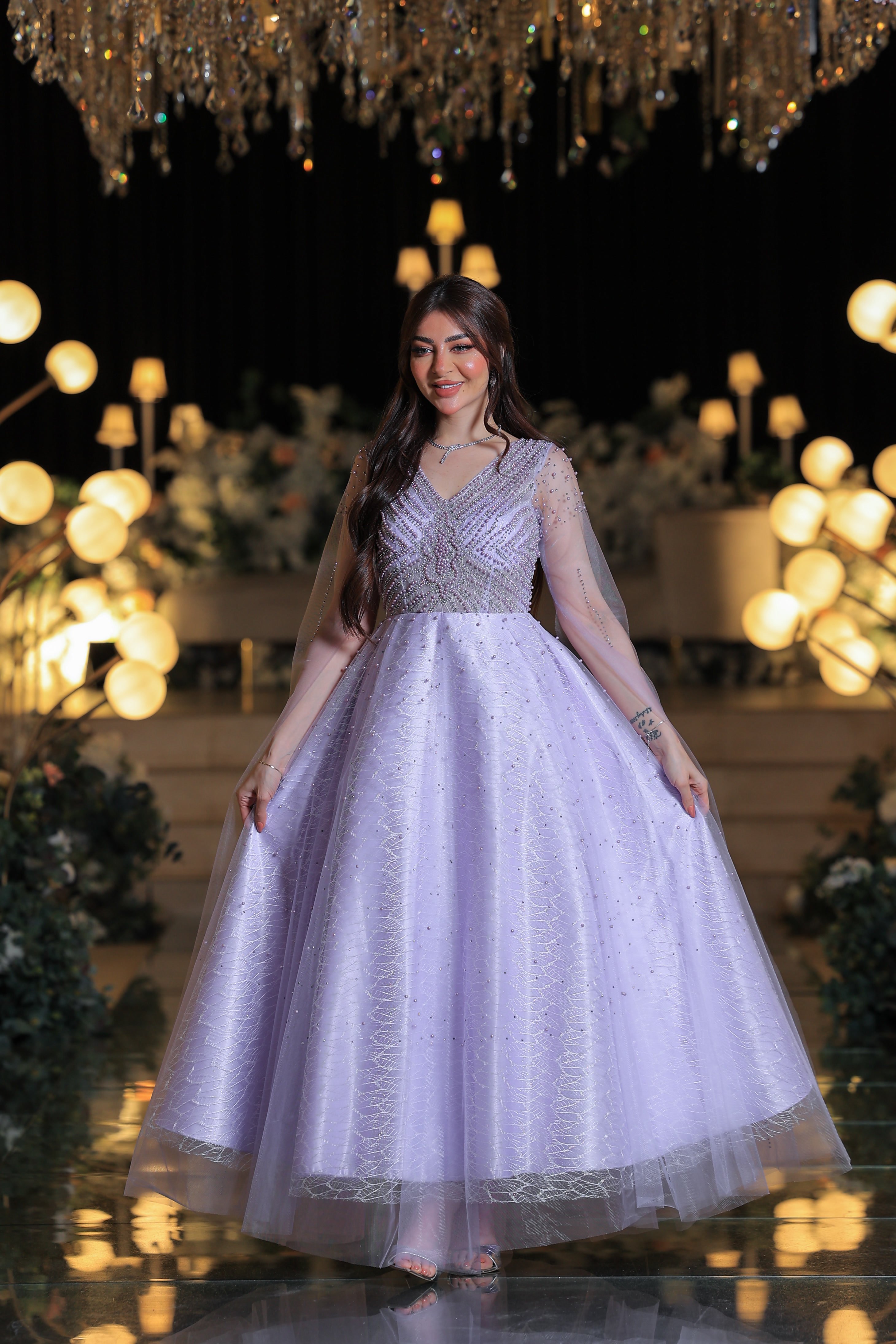 💫🌸 فستان بنفسجي بتطريز ملكي فاخر وأكمام تل شفافة يمنحك أناقة تُحفر في الذاكرة من أول لحظة 🌸💫