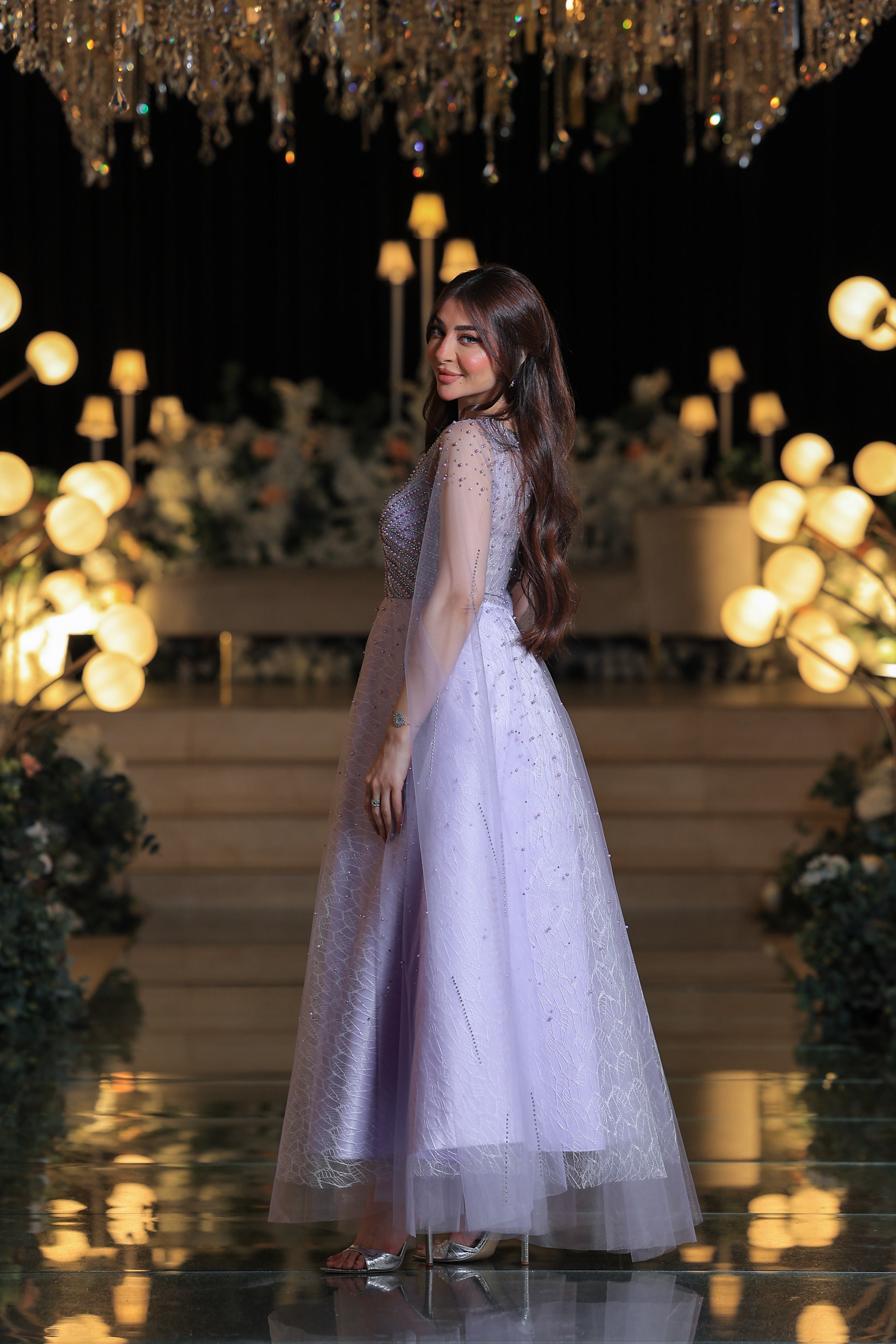 اختبري معنى الرقي المطلق مع هذا الفستان البنفسجي الملكي من جاكوين، المصمم خصيصاً للنساء الباحثات عن إطلالة تجمع بين الفخامة والأنوثة والثقة الطاغية. يأتي الفستان من قماش التول الفاخر بطبقات انسيابية تمنحك مظهراً مهيباً تحت الإضاءة، مع تطريز هندسي فاخر يزيّن الصدر والأكمام ليمنح الفستان عمقاً بصرياً وتألّقاً فريداً . الأكمام الشفافة المطرزة تبرز جمال اليدين برقي ناعم، بينما تضيف قصة الـA-Line لمسة ملكية تعزز تناسق القوام وتُظهر قوامك بأجمل إطلالة. هذا الفستان ليس مجرد قطعة ترتدى، بل تجربة ملكية تعكس روحك الراقية وتجعلكِ الحدث الأبرز في أي مناسبة