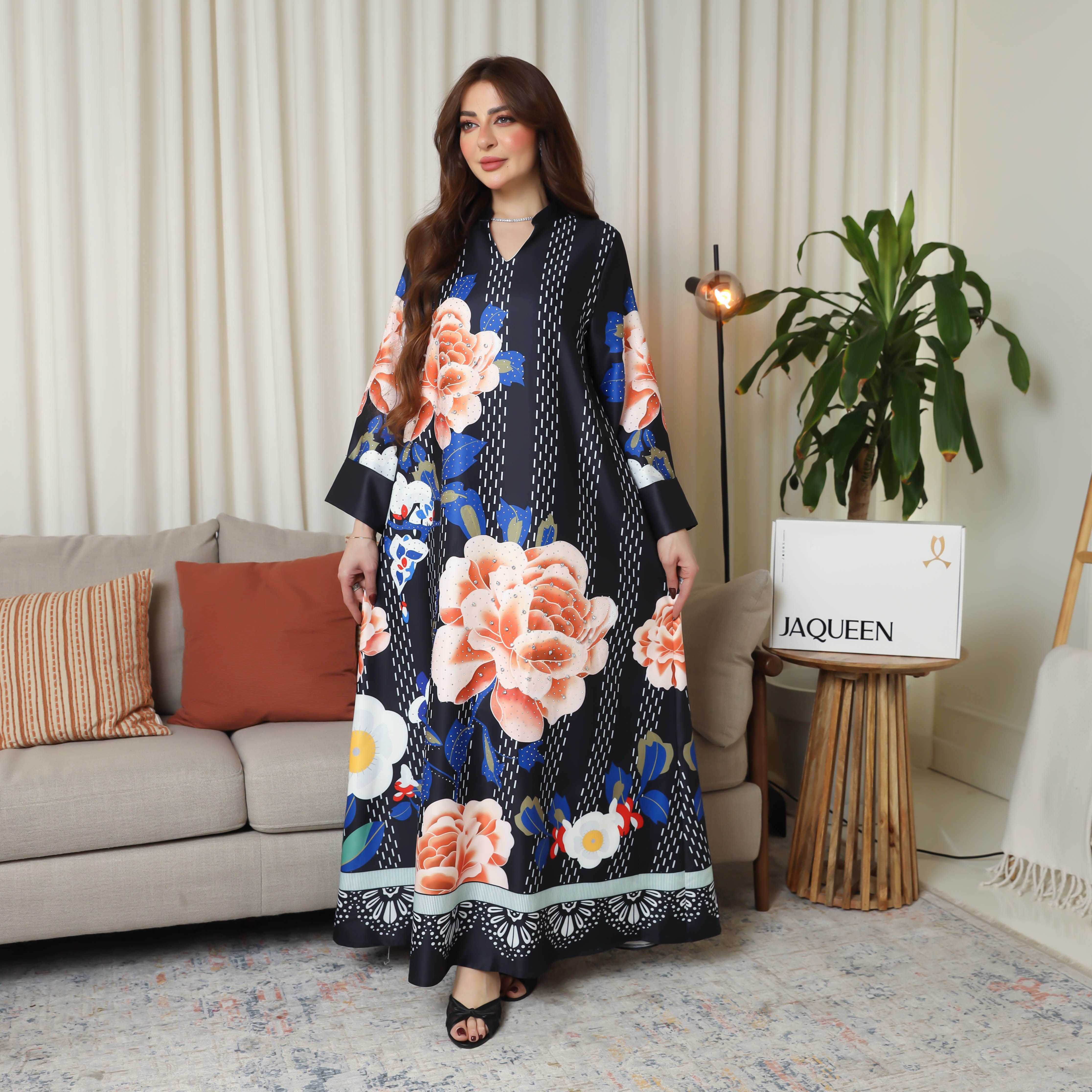 - مميزات التصميم : قصّة واسعة مريحة, نقشة ورود أنثوية .